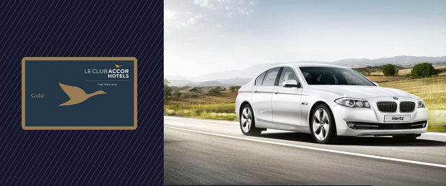 - Le Club AccorHotels雅高乐雅会会员如申请成为Hertz金卡会员 (Hertz Gold Plus Rewards)®,即可获赠900积分,可兑换一日奖励租车。