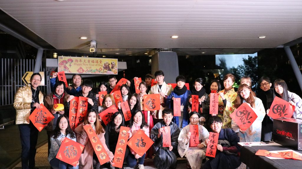 香港2018年02月13日 /新闻稿网 - Xinwengao.com/ - 农历新年快将来临,书写挥春向来是中国的传统习俗。香港城市大学为了增加国际学生及交流生认识香港新年传统习俗和气氛,学生宿舍处特别在新年前夕于校内举办挥春书法活动。活动当天有超过315名来自26个国家,包括欧美及亚洲的国际学生及交流生参加,现场气氛非常热闹,充满着过节的喜庆气氛。虽然有些参与的同学不黯汉字,但仍然非常投入,并由本地学生教导书写挥春,充满着互动氛围,突显了校园国际化的特色。