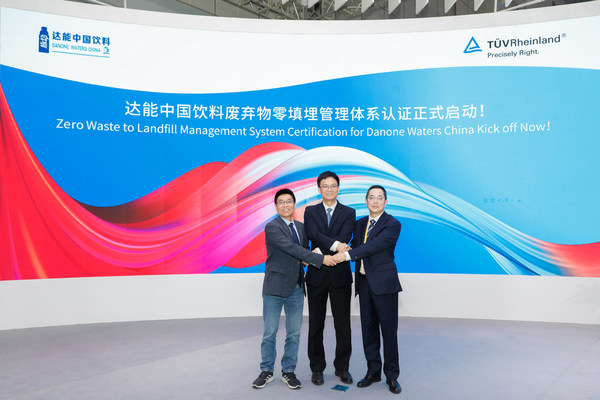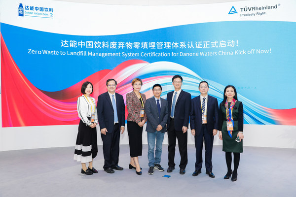 上海2020年11月8日 /新闻稿网 - Xinwengao.com/ — 2020年11月7日上午,国际独立第三方检测、检验和认证机构德国莱茵TUV集团(以下简称“TUV莱茵”)与全球500强达能公司旗下达能中国饮料,在第三届中国国际进口博览会(以下简称“进博会”)现场举办了废弃物零填埋管理体系认证启动仪式。这是去年TUV莱茵在第二届进博会上全球首发废弃物零填埋认证服务后的落地项目。广东省商务厅投资促进局局长孙斌、达能中国饮料工业副总裁游天富、TUV莱茵大中华区管理体系服务副总裁方为民等共同见证了项目启动。