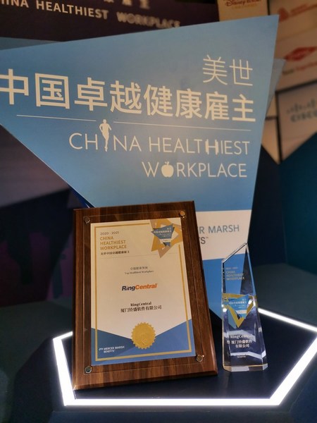 厦门2020年11月13日 /新闻稿网 - Xinwengao.com/ — 2020年11月12日,2020美世健康福利云端论坛暨2020-2021美世中国卓越健康雇主颁奖典礼在上海举行,全程线上同步直播。颁奖典礼上,RingCentral厦门铃盛软件(以下简称“铃盛”)被美世正式授予“2020-2021美世中国卓越健康领袖”的称号,榜单上共有22家企业获此殊荣。在席卷全球的疫情下,这项关于健康的奖项更凸显出铃盛难能可贵的“以人为本”的价值观,是对铃盛在员工健康方面所做努力的认可。