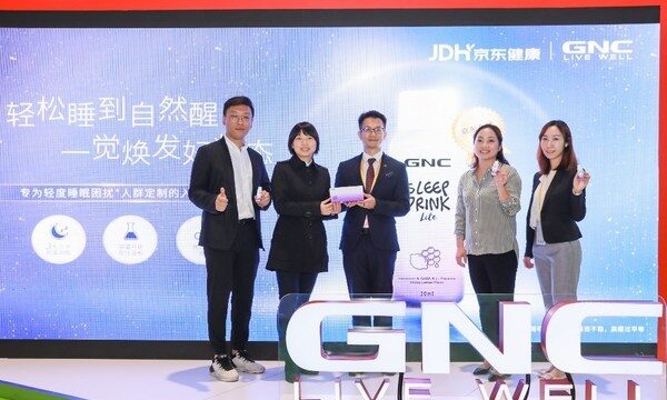 上海2020年11月13日 /新闻稿网 - Xinwengao.com/ — 深度结合品牌优势及平台资源,知名膳食补充剂品牌GNC(健安喜)与京东健康联手,于11月7日第三届中国国际进口博览会现场召开新品发布会,共同发布GNC睡眠饮系列产品 — 轻柔版“小魔瓶”Sleep Drink Lite。GNC中国区总裁黄翔祺先生与京东健康营养保健业务部总经理杨叶女士在进博会现场一同见证新品盛典。