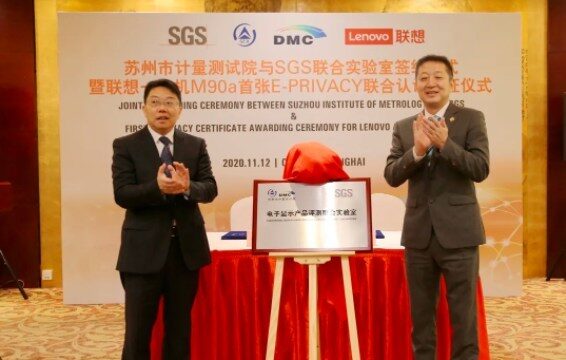 上海2020年11月14日 /新闻稿网 - Xinwengao.com/ — 2020年11月12日,国际公认的检验、鉴定、测试和认证机构SGS携手苏州市计量测试院、联想在苏州成功举办“苏州市计量测试院与SGS联合实验室签约仪式暨联想一体机M90a首张E-PRIVACY联合认证颁证仪式”。