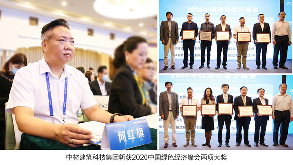 本次峰会重点启动了“绿色伙伴计划 — 区域绿色经济指数计划”,并现场表彰“2020中国绿色企业成就奖”“2020中国绿色技术创新奖”获奖单位。中材建筑科技有限公司凭长久以来在建筑装饰行业的勤勉耕耘与在绿色环保建材领域的卓越贡献,荣获“2020中国绿色企业成就奖”,旗下中郡新材料科技有限公司则凭系列新型绿色环保建材制备技术荣获“2020中国绿色技术创新奖”。由此,中材建筑科技集团成为唯一荣获本次峰会两项大奖的企业。
