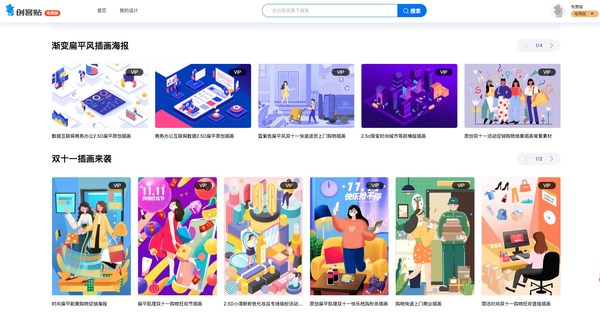 创客贴根据有赞商家需求分类了海量的素材包,从店铺首页、PC海报、手机海报到主图图标、首页通栏海报、宝贝详情再到主图直通车、优惠券等素材模板都一应俱全,完全能满足电商运营者的所有设计需求,用户在网站上下载就能直接使用。除模板素材之外,“创客贴有赞电商版”还提供了电商类原创插画,帮助店铺的视觉吸引力更上一个台阶。