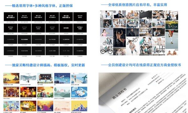 版权,是设计行业产生纠纷的主要根源;素材,是所有设计参与者面临的最大难题。创客贴平台提供海量设计模板、素材、插画、图片、字体等商业版权资源,拥有国家颁发的作品登记证书,付费会员创建的每一个设计均在线获得正规官方商业授权书,用户设计和下载过程中,系统实时监控侵权风险,从源头杜绝版权风险。另外,平台针对企业VIP客户提供一对一在线授权和流程咨询服务,为企业提供专业版权保障。