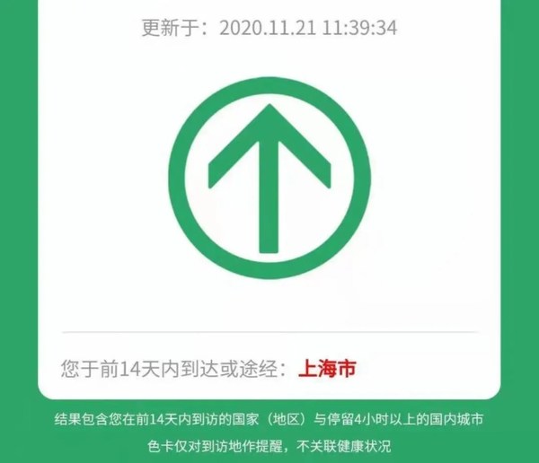 通信大数据行程卡显示只要未经中高风险地区,途径“上海市”依然是一张“绿色的行程卡”。