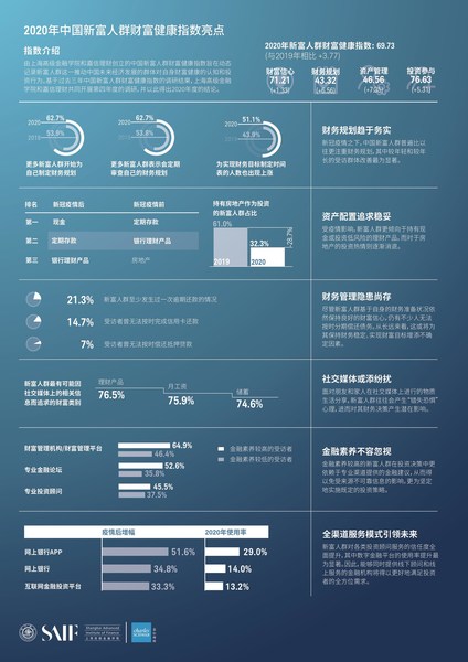 上海2020年11月30日 /新闻稿网 - Xinwengao.com/ — 11月27日,上海交通大学上海高级金融学院(以下简称“上海高金”)与全球领先的金融服务机构嘉信理财(Charles Schwab)共同发布了第四年度的“中国新富人群财富健康指数”。该指数旨在追踪中国新富人群 — 这一对中国及全球经济有着持续增长的影响力的群体 — 不断变化的财富观念。