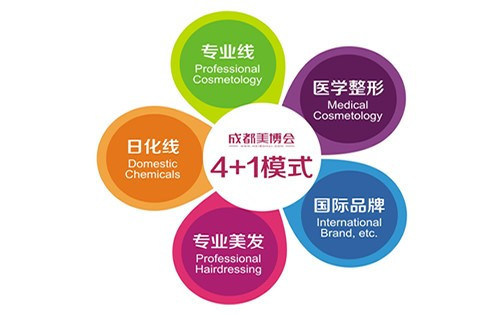成都美博会特有的“4+1”模式(即专业线、日化线、医学整形、专业美发、国际品牌)全面展示了美妆产业链。基于23年深耕美业的资源,成都美博会在专业线上相较于其他同行业类展会有明显的优势。