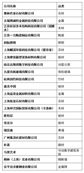 【墙面材料及其他类】天丽建龙、飞腾、嘉邦、顶鑫、嘉耐、安徽轻工、世纪豪门、阿路邦、蓝标等。