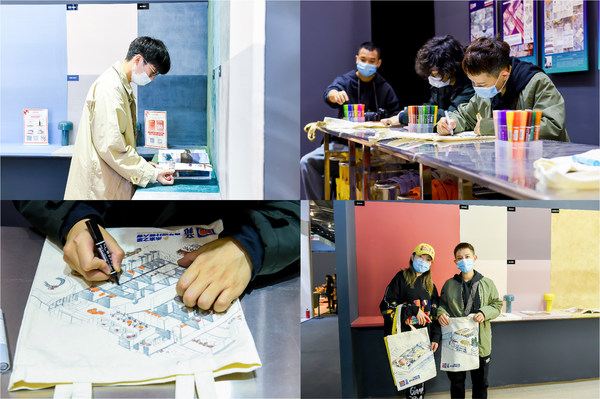 此外,被设定为家庭成员共同工作、沟通的长桌区域,在设计上海期间则成为家居廊联手立邦特设的“2020未来之星青年设计师大赛”互动区,现场展出了本届大赛的16幅获奖作品并设置DIY互动活动,让观众在观展的同时亲自设计一款专属的色彩小物件。