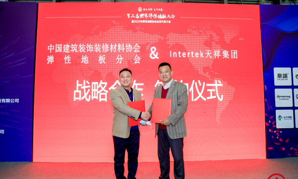 上海2020年12月10日 /新闻稿网 - Xinwengao.com/ — 12月9日,第二届世界弹性地板大会在上海顺利举行,Intertek天祥集团与中国建筑装饰装修材料协会弹性地板分会正式缔结战略合作伙伴关系,双方将共同推进Clean Air认证计划,该计划将重点关注装饰装修材料挥发性有机物VOC,进一步促进和支持弹性地板行业绿色健康的全球化发展。中国建筑装饰装修材料协会弹性地板分会秘书长马金先生,Intertek天祥集团建筑工程事业部大中华区总经理黄强先生,高级销售经理刘海先生出席仪式并签署战略合作协议。