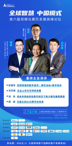 各位有意向参与此次峰会的餐饮从业者,请关注“奥琦玮ACEWILL”公众号,回复1218参与报名,为共同你实现产业的规模化发展贡献自己的一份心力。