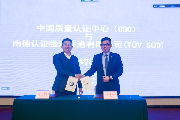 广州2020年12月18日 /新闻稿网 - Xinwengao.com/ — 近日,TUV南德意志集团香港分公司(以下简称TUV南德)与中国质量认证中心(以下简称CQC)举行签约仪式,正式签署关于中国强制性产品认证(CCC)委托检测协议。此次签约标志了TUV南德香港分公司与CQC在中国CCC认证领域的深度合作。在此合作框架下,双方将在认证检测、科研课题、认证项目研发、标准规范、质量研究、培训服务等方面开展合作,积极利用自身资源,促进行业内认证检测水平的提升,合作服务客户。TUV南德集团代表 — 广州分公司总经理欧阳强友先生、CQC副主任曾广峰先生,以及来自国家市场监督管理局、香港创新科技署、广东省市场监督管理局的代表等出席了本次签约仪式。