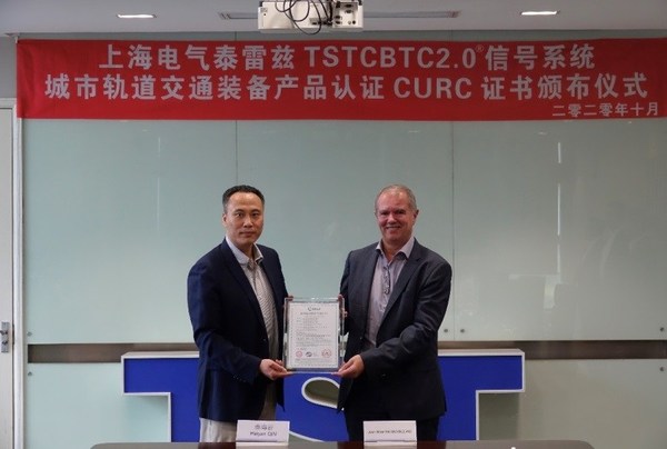 上海2020年12月21日 /新闻稿网 - Xinwengao.com/ — 上海电气泰雷兹在中国自主创新的TSTCBTC®2.0信号系统,作为泰雷兹全球城市轨道交通信号系统产品组合的一员,于近日获得了中国城市轨道交通装备产品认证(CURC),这是中国轨道交通行业有史以来首个获得该认证的CBTC(基于通信的列车控制)产品。
