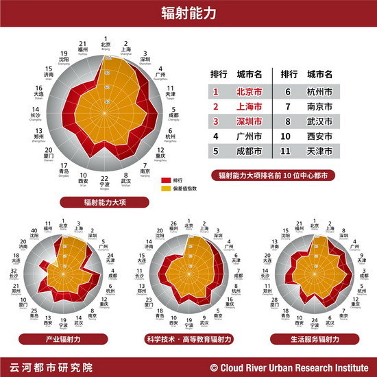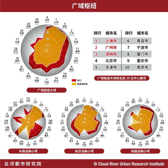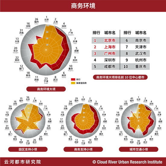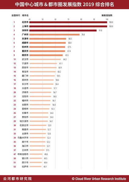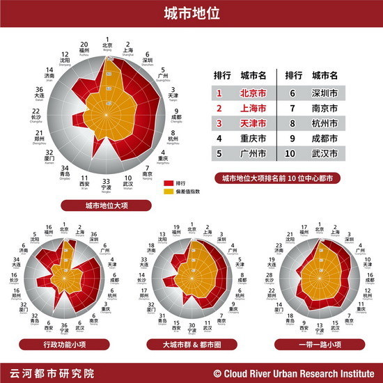 36座中心城市高质量发展体检成绩单出炉 北京2020年12月29日 /新闻稿网 - Xinwengao.com/ — 近日,中国网采访了日本东京经济大学教授、云河都市研究院院长周牧之,报道了如下内容:由高端智库云河都市研究院编制的“中国中心城市&都市圈发展指数2019”正式发布。在综合排名的榜单上,北京、上海、深圳位列三甲,第4位到第9位的城市分别是广州、天津、成都、杭州、重庆和南京。 与2018年相比,前9位城市的排名没有变化,由于并非中心城市的苏州跻身第10位,导致武汉跌出了前10位城市。前10位城市之外,宁波、郑州、济南、福州、贵阳、石家庄、南宁、银川等城市的位次有所提升。 “中国中心城市&都市圈发展指数”是在受国家发展改革委员会发展战略和规划司委托研究开发的“中国中心城市指数”基础上发展起来的,也是国家发展改革委员会发展战略和规划司与云河都市研究院共同开发的“中国城市综合发展指标”的衍生指数,这是该指数继2017年以来的第三次年度发布。 在“中国中心城市&都市圈发展指数2019”中,东北三省的窘境显得特别突出,沈阳、长春、哈尔滨三个省会城市与上年度相比,分别下降了2个位次、1个位次、3个位次,分别屈居第21位、第26位、第29位。当年作为共和国长子的重工业基地雄风与今天在中心城市竞争中的衰退形成了尴尬的反差。 中国中心城市&都市圈发展指数2019综合排名 “中国中心城市&都市圈发展指数”的一大特点是将4个直辖市、22个省会城市、5个自治区首府以及5个计划单列市,共36座城市定义为“中心城市”来作为重点分析对象,放在全国297个地级及以上城市的大盘中进行评价。根据该指数分析显示,这36座“中心城市”,今天创造了全国40.5%的GDP、51.3%的货物出口、48.6%专利授权量,集中了全国24%的常住人口、42%的DID人口、67.5%的主板上市公司,拥有全国94.8%的981&211高等学府、57.8%的五星级酒店、48.1%的三甲医院。 “中国中心城市&都市圈发展指数2019”由“城市地位、都市圈实力、辐射能力、广域枢纽、开放交流、商务环境、创新创业、生态资源环境、生活品质、文化教育”等10个大项和30个小项,114组指标数据组成,科学、系统、详尽地对中心城市的都市圈发展品质进行了全方位诊断,也是对中国中心城市高质量发展的综合评价。 “中国中心城市&都市圈发展指数”是由从“中国城市综合发展指标”的878组基础数据中精选出来的438组与中心城市&都市圈发展评价关系紧密的基础数据构成。其中,不仅包括统计数据,还有卫星遥感数据和互联网大数据。因此,“中国中心城市&都市圈发展指数”是能够运用不同领域的数据资源,可以用“五感”来高度感知和判断城市的,先进的多模态指标体系(Multimodal Index) 。例如通过卫星遥感数据对DID(Densely Inhabited District:人口高密集地区)进行分析,能够准确地把握都市圈的人口规模、分布和密度与经济发展、基础设施建设、社会管理、生态环境治理之间的关系,将对都市圈的研究一举提高到了更高层次。 将二氧化碳排放量纳入到该指数是“中国中心城市&都市圈发展指数2019”的一大看点。通过多年的努力,云河都市研究院攻克了通过卫星数据解析和GIS(地理信息系统)分析,准确计算各城市二氧化碳排放量的难关,大幅度地提高了城市高质量发展评价的精准度与分析的深度。 中国中心城市&都市圈指数结构 1. 城市地位大项 北京、上海雄踞城市地位大项排名前两位,而且在偏差值上相较其他城市优势显著。天津、重庆、广州、深圳、南京、杭州、成都、武汉依次位居第3位到第10位。与2018年比较,北京、上海的位次保持不变,天津、重庆、深圳的位次均有提升。特别是深圳从2018年的第9位上升到2019年的第6位。 城市地位大项,不仅注重城市的行政层级,还重视作为城市群中心城市的评价以及在一带一路、长江经济带、京津冀协同发展等国家战略的地位和表现。 为此,该大项设置行政功能、大城市群&都市圈、一带一路3个小项指标,由行政层级、大使馆 • 领事馆、国际组织、大城市群层级、中心城市层级、都市圈层级、一带一路区位指数、历史地位等8组指标数据构成。 城市地位 (1)行政功能小项:北京、上海、重庆在该小项位居前3位,排名第4位到第10位的城市分别是天津、沈阳、广州、杭州、南京、成都、武汉。首都、直辖市、省会城市在行政功能小项中占尽优势。 (2)大城市群&都市圈小项:北京、上海、深圳在该小项位居前3位,排名第4位到第10位的城市分别是广州、天津、杭州、南京、成都、重庆、合肥。长三角、珠三角、京津冀、成渝四大城市群的城市在大城市群小项中得分较高。 (3)一带一路小项:北京、上海、深圳在该小项位居前3位,排名第4位到第10位的城市分别是广州、乌鲁木齐、昆明、南京、拉萨、西安、天津。与2018年比较,北京、上海、深圳、南京的位次保持不变,广州、乌鲁木齐、昆明、拉萨、西安的位次均有提升,一带一路节点城市和贸易投资以及人员往来表现较佳的城市得分较高。 2. 都市圈实力大项 都市圈实力大项排名前3位的城市是北京、上海、深圳,从偏差值来看相较其他城市优势突出。排名前10的中心城市还有,广州、重庆、天津、杭州、成都、武汉。与2018年比较,北京、上海、深圳、广州的位次保持不变,重庆上升1个位次,杭州上升2个位次。