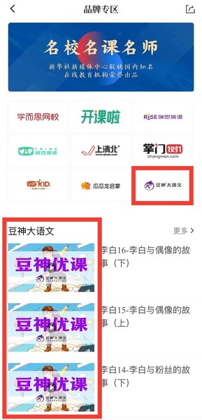 北京2020年12月31日 /新闻稿网 - Xinwengao.com/ — 近日,豆神教育与新华社新媒体中心及国内多家知名在线教育机构共同打造《名校名课名师》精品课程专区,全国的中小学生都可在新华社客户端内免费观看。