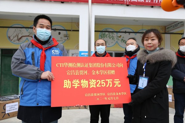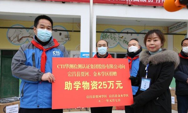 深圳2021年1月7日 /新闻稿网 - Xinwengao.com/ — 2021年1月7日,中国第三方检测认证行业领导者华测检测认证集团股份有限公司(简称CTI华测检测)为甘肃省陇南市宕昌县贾河学区、金木学区捐资助学活动在贾河校区隆重举行。甘肃省陇南市委常委、副市长潘海峰、宕昌县政府副县长刘琳、宕昌县教育局局长宋世忠、青岛文旅集团财务总监郑淑萍、宕昌县贾河乡党委书记蒲新强、宕昌贾河学区校长杨亚红、宕昌金木学区校长戚玉方以及CTI华测检测北方区行政总裁陈彦长、CTI华测检测监督抽查检验客户部总经理刘成勇等出席了捐赠仪式。仪式上,CTI华测检测向宕昌县贾河学区、金木学区捐赠价值25万元的助学物资。