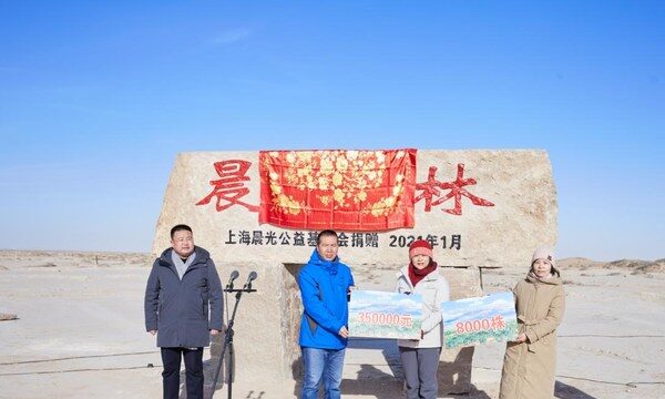 上海2021年1月8日 /新闻稿网 - Xinwengao.com/ — 2021年1月7日,“晨光公益林”捐赠仪式在甘肃省民勤县昌宁镇四方墩滩建举行,上海晨光公益基金会捐赠的首片“晨光林”正式揭牌,为民勤县的荒漠化防治贡献一份力量。
