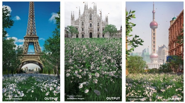 “城市自然系列”CG艺术作品以巴黎、米兰和上海三个城市著名建筑为主题,旅客可近距离欣赏巴黎的白雏菊在埃菲尔铁塔下盛放,蝴蝶扇动蓝色羽翼扑面而来;充满绿意的米兰大教堂一片安静祥和;晨钟暮鼓,高楼林立的上海外滩是风吹草地的恬静光景。栩栩如生,共同沐浴生命阳光。