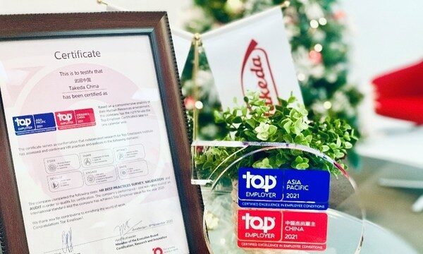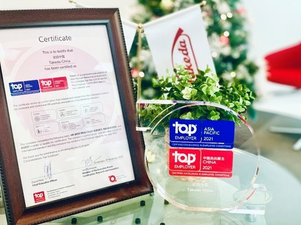 上海2021年1月26日 /新闻稿网 - Xinwengao.com/ — 近日,国际权威的雇主品牌调研机构 — 杰出雇主调研机构(Top Employers Institute)隆重揭晓了其年度榜单。武田中国连续第五年荣获“中国杰出雇主2021”认证,因其持续的人才发展与培养策略、雇主品牌建设以及员工关爱管理制度三个方面的卓越表现获得认可。