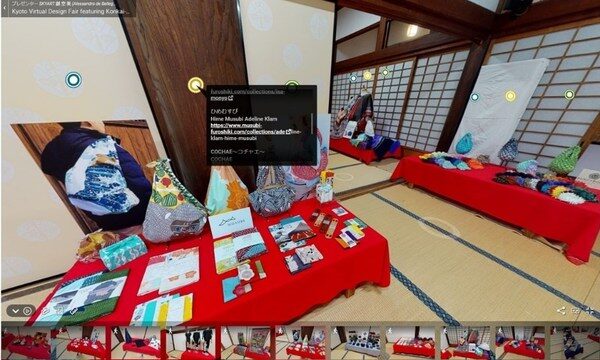 主办方在金戒光明寺中拍摄了三维立体照片,以展示45家京都企业的产品。来自世界各地的与会者可以一边在网站上欣赏京都的红叶和当地文化,一边挑选商品。此外,海外买家还可以通过Eventhub系统与商家进行线上商务会议。