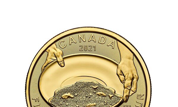 金币背面则是著名硬币设计师Steve Hepburn的作品: 矿工手里拿着淘金盘,这是恒久的淘金热标志之一。艺术家精细刻画了盘内的砾石和水,砾石在淘金人用水冲刷找金子时闪闪发光。水从盘中溢出到金币的安全标记,栩栩如生地再现当时场景。 金币上有铸币厂所有金币都有的标志性径向线,以及带有微刻的枫叶标记,显示的数字21对应金币的发行年份。金币采用信用卡式包装,内含铸币厂首席测定员签字的纯度证明。