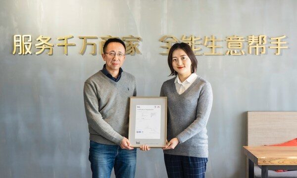 上海2021年1月29日 /新闻稿网 - Xinwengao.com/ — 2020年12月30日,收钱吧通过权威认证机构BSI审核,获得ISO27001:2013信息安全管理体系认证,助力收钱吧在信息安全管理提升至国际水平。2021年1月18日,BSI正式向收钱吧颁发认证证书。BSI中国区政府关系和战略合作副总监蒋懿女士、收钱吧集团高级副总裁(CTO)常建龙先生出席了证书颁发仪式。
