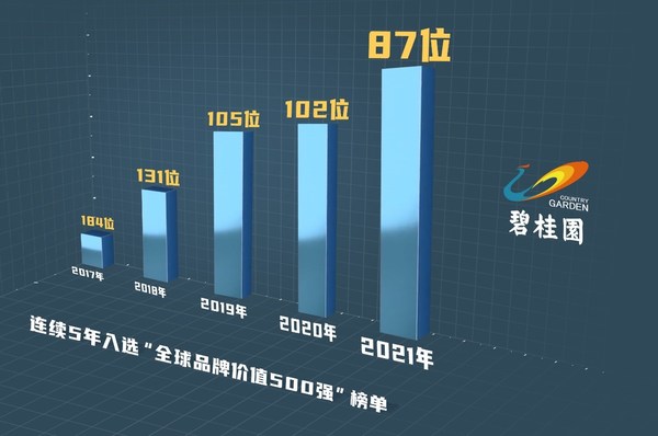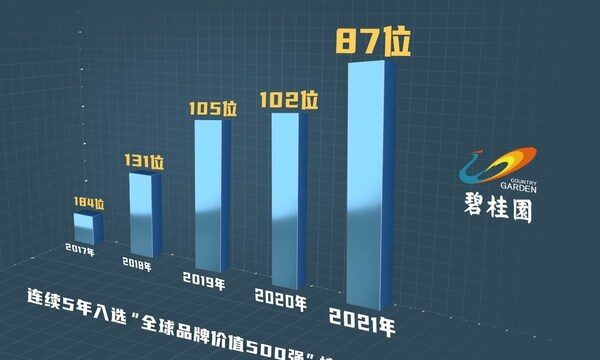 佛山2021年2月1日 /新闻稿网 - Xinwengao.com/ — 近日,英国知名品牌价值咨询公司Brand Finance发布“2021年全球品牌价值500强”榜单,碧桂园集团(HK:2007)排名自2017年以来实现“五连跳”,持续攀升至第87位,首次跻身前100位。