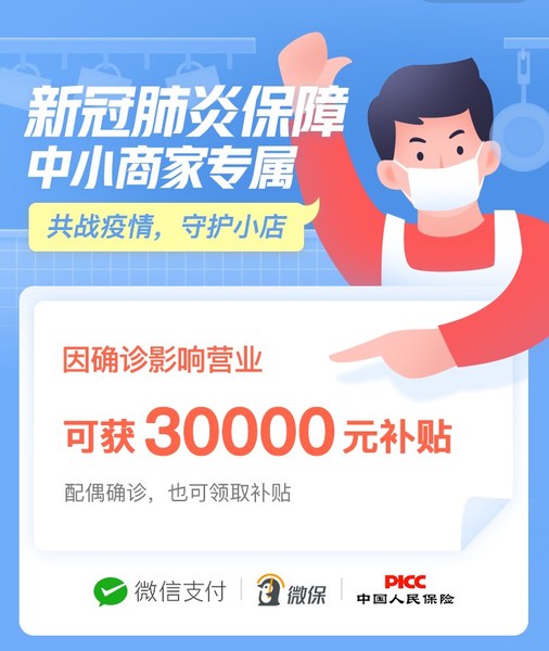 深圳2021年2月4日 /新闻稿网 - Xinwengao.com/ — 响应“非必要不返乡”的号召,今年春节,全国各地将有不少小微商户夫妻、店员留在工作地原地过年、营业。为了给留守经营的小商家多一份安全感,临近春节,微信支付携手微保、中国人保推出针对小商户的春节保障升级计划。全国使用微信支付“收款小账本”的小商户,可在“收款小账本”小程序中保障中心使用1积分即可领取新冠肺炎保障。具体保障内容包括:商家或其配偶一旦确诊为新冠肺炎,可一次性领取补贴3万元,夫妻双方最高补贴6万元。