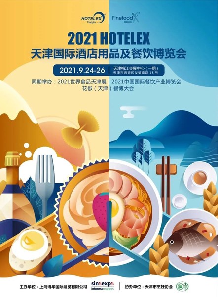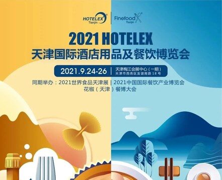 2021 HOTELEX天津国际酒店用品及餐饮博览会与2021中国国际餐饮产业博览会将于2021年9月24-26日,在天津梅江会展中心(一期)举办,总体规模5万平米。同期举办:2021世界食品天津展暨天津国际餐饮设备及食材供应链展览会、花椒(天津)餐博大会。