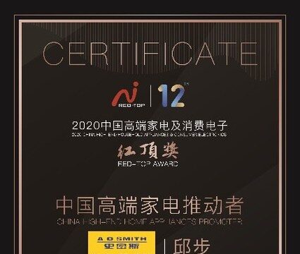 南京2021年2月20日 /新闻稿网 - Xinwengao.com/ — 随着疫情逐渐平息,在这个咋暖还寒的季节,国内家电行业似乎嗅到了“春天”的味道。随着一系列年度表彰尘埃落定,行业里新的标杆企业也逐渐浮出水面。家电巨头A.O.史密斯再次成为一年来行业的领跑者,凭借着卓越的技术实力和百年积淀的创新力赢得了市场与消费者的一致认可。日前在京落幕的行业大奖——“第12届中国高端家电趋势发布暨红顶奖颁奖盛典”上,A.O.史密斯旗下的“1级静音”零冷水燃气热水器”、“橱下冷热即饮”净水机荣获“卓越创新精品”大奖,而A.O.史密斯美国集团高级副总裁兼中国公司总裁邱步先生则荣获“中国高端家电推动者”的荣誉称号。
