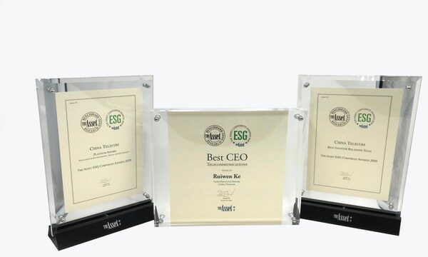 亚洲著名财经杂志《The Asset》所举办的“2020年ESG企业大奖”至今已第20届,为亚洲区内举办历史最悠久的环境、社会及管治奖项。“企业白金奖”表扬公司在财务表现、管理、企业管治、社会责任、环境保护和投资者关系等全部范畴的出色表现。中国电信是区内唯一一家连续12年获得“企业白金奖”的电信公司,显示中国电信在环境保护、社会责任、企业管治等方面的优秀表现达至区内领先水平,获得专业认可。