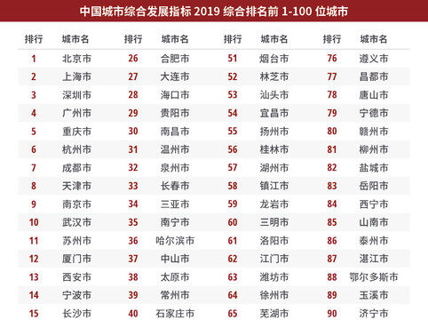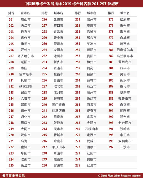 “中国城市综合发展指标2019” 全国297城市排行榜