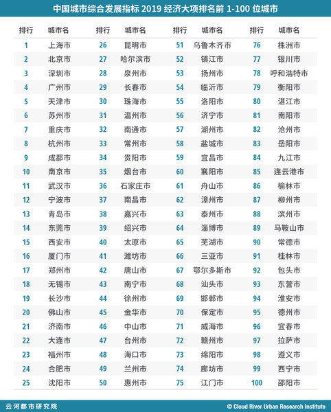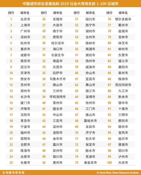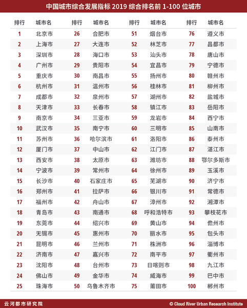 北京2021年2月23日 /新闻稿网 - Xinwengao.com/ — 以下为来自中国网标题为《“中国城市综合发展指标2019” 全国297城市排行榜》的报道:新春伊始,云河都市研究院发布了全国297个地级及以上城市“中国城市综合发展指标2019”综合评价的排行榜,以及环境、社会、经济三个大项的前100位排名。赵启正、杨伟民、周其仁、邱晓华、杜平、明晓东等著名专家学者特撰文寄语对“中国城市综合发展指标”的肯定与鞭策,以及对中国城市发展的展望和期待。