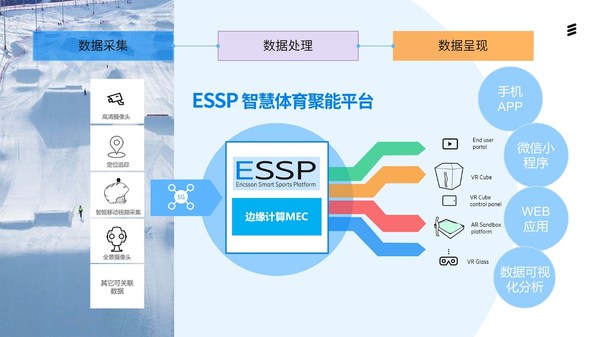 爱立信智慧体育聚能平台(ESSP)基于5G网络的特性,将视频流媒体服务、LBS位置服务、AI人工智能分析服务、运营服务融合,并北向开放相应能力接口,提供丰富的AR、VR、全景直播、位置、人工智能、3D游览等先进技术应用体验,在为游客提供“沉浸式”冰雪运动体验同时,也为场馆的高效、安全运营提供了基础平台保障。