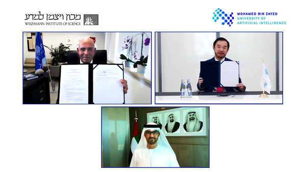 MBZUAI总裁Eric Xing教授和威茨曼研究所Alon Chen教授在两家机构官员出席的虚拟仪式上签署了新的合作伙伴协议。