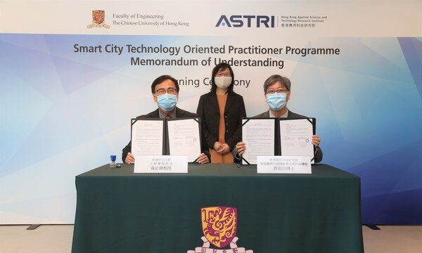 香港2021年3月2日 /新闻稿网 - Xinwengao.com/ — 香港应用科技研究院(应科院)与香港中文大学(中大)工程学院今天(3月2日)签署合作备忘录,推出“智慧城市科技专才训练计划”(计划)。应科院将为最多30名中大工程学院硕士生提供为期4至8个月的全职受薪工作,让他们参与应科院已开展的智慧城市应用科技研发项目,为香港培育发展智慧城市的未来栋梁。