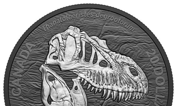 的发现加深了古生物学家对加拿大史前历史的理解。据估计,该类霸王龙处于食物链顶端,比暴龙早1200万年,估计长八米(26英尺)。John和Sandra De Groot夫妇在艾伯塔省鲍尔河家庭散步时发现了化石碎片,如今这些碎片成为了这枚新币的灵感来源。巨龙头骨化石在镀黑铑硬币顶部,具有岩石质感,栩栩如生展现这个可怕、有齿的两足食肉动物。从今天起即可从造币厂订购此枚及其他纪念币。