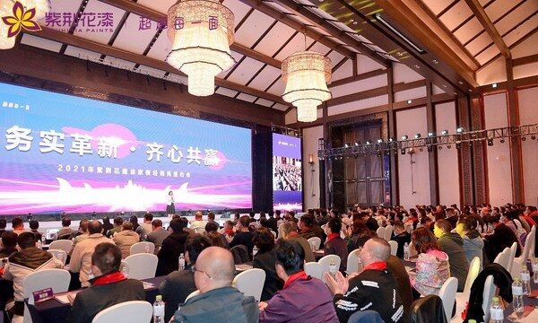 上海2021年3月11日 /新闻稿网 - Xinwengao.com/ — 2021年3月11日,“务实革新·齐心共赢”2021年紫荆花全国建涂家装经销商大会在重庆融创万达嘉华酒店盛大召开。紫荆花新材料集团家装涂料总经理解忠财先生、紫荆花新材料集团人力资源总经理谢宙奇先生和紫荆花新材料集团市场总经理纪鹭宁女士等集团高层领导,及紫荆花新材料集团各部门与来自全国各地的经销商朋友齐聚一堂,共同探讨行业趋势及变化,共同展望2021年的变革与计划。