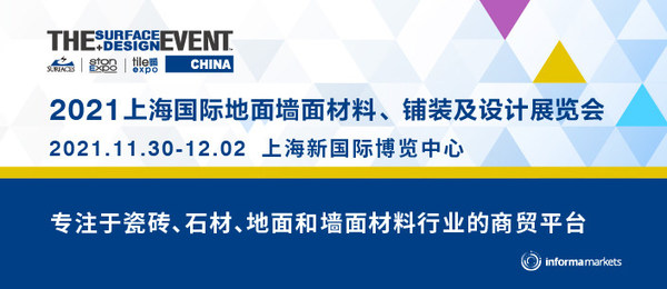 上海2021年3月12日 /新闻稿网 - Xinwengao.com/ — 上海国际地面墙面材料、铺装及设计展览会The Surface +Design Event China(简称:SURFACES China)旗下涵盖SURFACES表面铺装材料展、 StonExpo石材展、TileExpo建陶展三个专业建材展。展示室内外装饰工程相关的瓷砖、石材、磨石及人造石类、地板成品及生产设备和技术、弹性地材、运动地面、集成墙面及墙面装饰材料、顶墙及天花系统、卫浴洁具及整体卫浴、地毯、墙地面材料安装、地面墙面设计等各类装饰材料及产品,集中展示新产品、新技术和新设计方案。