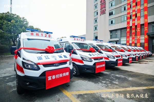 2017年,富春控股向杭州富阳7家医院捐赠10辆救护车,为家乡医疗卫生事业护航;2020年,向孝感汉川市、鄂州鄂城区共捐赠10辆救护车,为湖北疫后重振助力;2020年10月,向丽水缙云、景宁两县共捐赠6辆救护车;同年12月,向海宁捐赠5辆救护车……截至目前,富春控股已向全国多个省市共捐赠40余辆救护车。