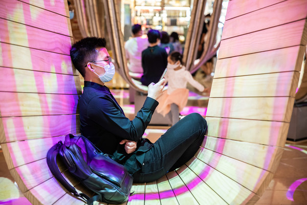 数字领域兼具话题性与辨识度的视觉艺术家郭锐文(Raven Kwok)也在现场致辞,分享本次与电子音乐制作人伍子轩(3ASiC)联手为室内版《请就座》增加本地特色的创作心路历程。人们或小坐或穿行,或休息或会友,光影与音乐随之变换,改变相应一环原有的视觉秩序,让每一刻都可视化,在人们心中留下独一无二的感受与共鸣。