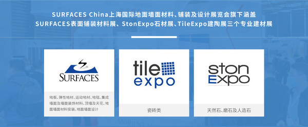 上海2021年3月22日 /新闻稿网 - Xinwengao.com/ — SURFACES China上海国际地面墙面材料、铺装及设计展览会旗下涵盖SURFACES表面铺装材料展、 StonExpo石材展、TileExpo建陶展三个专业建材展。SURFACES China 2021将于11月30日-12月2日在上海新国际博览中心举办,展会汇集全球范围内的瓷砖,石材,地板成品、生产设备和技术,弹性地材,集成墙面及墙面装饰材料,地面墙面设计及工艺,铺装及保养,全装修与装配式内装,吊顶及天花,卫浴洁具等知名企业,集中展示新产品、新技术和新设计方案。