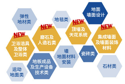 地板、弹性地材、运动地材、地毯、集成墙面及墙面装饰材料、顶墙及天花、地面墙面材料安装、地面墙面设计
