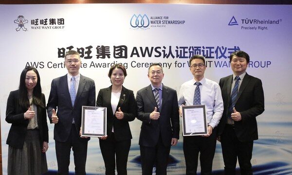 上海2021年3月22日 /新闻稿网 - Xinwengao.com/ — 2021年3月22日,正值第二十九届“世界水日”,中国旺旺旗下广州大旺食品有限公司和广州永旺食品有限公司(以下简称“中国旺旺”)通过德国莱茵TUV大中华区(简称“TUV莱茵”)审核,获得了AWS(Alliance for Water Stewardship,国际可持续水管理联盟)“黄金级”认证证书。中国旺旺作为一家大型综合食品企业,获中国休闲食品行业首张AWS“黄金级”证书,代表旺旺集团在水资源管理方面整体对标国际先进水平,将对国内休闲食品行业的水资源可持续管理起到积极的示范作用。