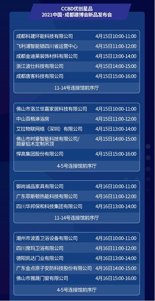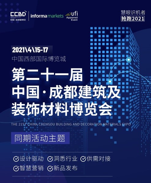 —-设计驱动·洞悉行业·供需对接·智慧营销·新品发布 成都2021年3月24日 /新闻稿网 - Xinwengao.com/ — 第二十一届中国(成都)建筑及装饰材料博览会(简称:中国成都建博会/CCBD)将于2021年4月15-17日在成都·中国西部国际博览城盛大开幕。CCBD 2021展出面积达15万平米,1,600余家中高端品牌厂家参展,30,000+行业新品展示,同时展会联合30多家行业协会、行业媒体及品牌企业共同推出超30场专题论坛及活动,包括新品发布、高峰论坛、培训会、颁奖大会、作品展示、商贸配对、门店培训等。2021年将全面升级,紧紧围绕设计驱动·洞悉行业·供需对接·智慧营销·新品发布这五大主题,提供展商和观众与业内资深专家及同行精英同交流的平台,提前掌握行业新理念、新技术、新营销,从而为公司业务扩展与新产品研发助力。 设计驱动,链接设计师与材料的桥 大家居时代、全屋整装时代围绕着当前装修、家装行业发展方向,而“大家居”已经是建材行业默认的趋势,“大家居”概念的产生,可以说是市场的必然和用户需求的使然。2021中国成都建博会将打造“大家居·设计周”,引入多场次、多种形式关于设计活动。通过设计论坛活动、沙龙交流会、作品展示,构筑设计师与材料商的沟通桥梁。 成渝双城设计大展·打造高品质美好生活系列活动之中国十佳家装设计师演讲大赛 主办单位:成都市建筑装饰协会 4月15下午 9号馆·遂宁厅 好风景·2021室内空间设计与材料和谐共生高峰论坛 ———以人为本,设计空间生态相融 主办单位:成都室内装饰行业协会 4月15下午 9号馆·成都厅 四川省室内装饰协会设计专委会年会 主办单位:四川省室内装饰协会 4月15下午 9号馆·遂宁厅 为进一步深化中西部设计前瞻理念,银杏金鸟奖获奖优秀作品将亮相展会,汇集四川乃至中西部的顶级大师代表作,更加生动展示了他们在室内设计领域不断追求创新、推动行业进步、创造出新成果的“工匠”精神。作品通过“传统+现代+中西部动能力量”创意设计核心本质的呈现,激发了更广泛的室内空间设计以及与此相关的新的、有趣的产品和设备方面的需求。 银杏金鸟奖获奖优秀作品展示 主办单位:成都室内装饰行业协会 4月15-17日 11号馆 洞悉行业,追踪行业热点与技术前沿 展会现场同期举办精彩的论坛活动,来自房地产、市政、工程、装饰行业、代理商等上中下产业链的行业大咖将分享行业痛点及发展趋势。CCBD旨在促进“产、学、研、用”多元化、多层次的思想碰撞,为中西部绿色发展及生态文明建设搭建资源对接、交流与合作的平台。 2021中国·成都房地产产品时代供应链高峰论坛 主办单位:四川房地产招采经理人联盟(川采联盟) 4月16日下午 9号馆·成都厅 中国西部首届绿色建筑与健康人居产业论坛 主办单位:成都市节能及新材料产业协会 4月15日下午 9号馆·宜宾厅 中国净化与新风行业发展论坛暨行业公益与品牌颁奖大会 主办单位:中国建筑金属结构协会 4月15日全天 9号馆·宜宾厅 2021年四川省建筑金属结构行业技术高峰论坛 主办单位:四川省金属结构行业协会、成都市金属结构行业协会 4月15日下午 9号馆·眉山厅 2021年四川省装配式钢结构发展论坛 主办单位:四川省装配式建筑产业协会 4月16日下午 9号馆·眉山厅 2021中国西部建筑业产业升级与创新发展高峰论坛 主办单位:四川省建筑业商会 4月15日下午 11号馆论坛区 2021河姆渡建筑生态创新大会 主办单位:四川省建筑业商会 4月16日下午 11号馆论坛区 中国门窗行业未来消费趋势论坛 主办方:窗出名门(上海)商业管理公司 4月16日上午 3-4号连接馆论坛区 中国室内净化高峰论坛 ——好水好空气成都站 主办单位:中国建筑材料流通协会、中国建筑材料流通协会室内净化服务委员会 4月16日上午 9号馆·遂宁厅 2021中国智能卫浴绿色发展高峰论坛 主办单位:中国建筑材料流通协会、中国建筑材料流通协会陶瓷制造生产服务委员会 4月16日下午 3-4号连接馆论坛区 2021中国(成都)清洁供热峰会暨南方明装散热器供暖技术交流会 主办单位:中国建筑金属结构协会清洁供热分会、中国建筑金属结构协会采暖散热器委员会 4月15日上午 11号馆论坛区 2020展会现场活动剪影 多场对接会,实现供需高效合作 2019、2020年展会成功举办两届“成都建博会一对一商贸对接会”,邀请到包括碧桂园、百庆集团、基准方中、中国建筑工程总公司、中联建设、鸿通集团、成都建工在内的400家优质买家,实现1300+场次对接,产生直接间接效益近20亿元的显著成效。2021年我们将继续联合合作的近30家协会、展会核心买家继续开展商贸采购对接会。专场精准对接会现场将中西部乃至全国的优质房地产、工程公司、经销商、代理商将与展会参展企业共聚,实现高效、精准合作。 智慧营销,助力企业销量突破增长 后疫情时代,市场环境发生变化,数字化营销大势所趋,渠道为王,订单为王,如何升级营销,抢占客户?展会组委会还将联合九正传媒、锁贸通举办以数字化营销为主题的峰会,邀约行业专家、成功转型商家分享营销干货及实战经验,搭建行业与营销新技术领域的跨界交流合作平台,帮助企业在同行中脱颖而出,实现销量突破增长。 2021中国家居建材行业数字化营销升级高峰论坛 主办单位:四川省建材家具装饰商会、九正建材网、九正直播 4月15日上午 3-4号连接馆论坛区 2021智