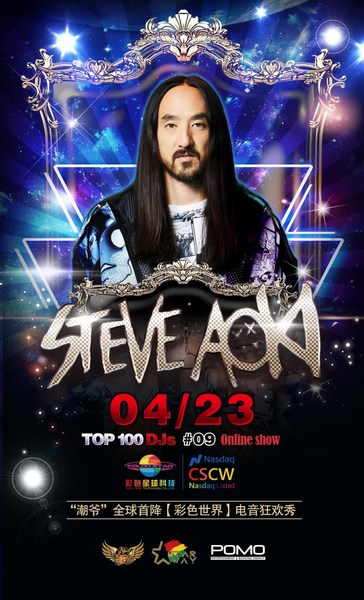 深圳2021年3月26日 /新闻稿网 - Xinwengao.com/ — 春暖花开,万物生长,压抑了一个冬天的激情仿佛都要在这个季节得以释放。没错,彩色星球科技(纳斯达克代码:cscw以下简称彩色星球或公司)必须不能错过这么好的时节。4月23号,旗下全球文娱共享互动平台【彩色世界】APP重磅携手全球百大DJ明星 — “潮爷”Steve Aoki带来超燃、超嗨、超燥的线上live show,用音乐燃爆你的小宇宙。