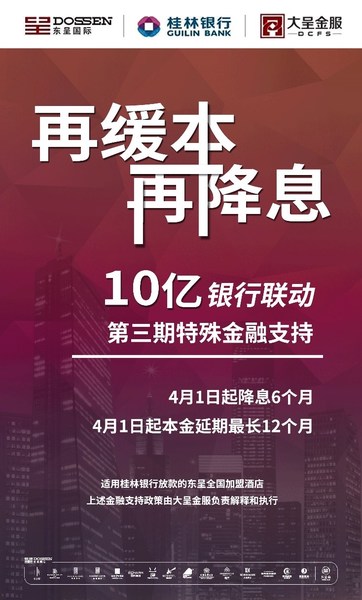 金融端,东呈联合桂林银行、大呈金服进行银企联动,首先针对桂林银行已经放贷的东呈加盟融资店,推出10亿元“再缓本”“再降息”优惠政策扶持:4月1日起,降息6个月,本金延期最长12个月,帮助门店进一步缓解现金流压力。