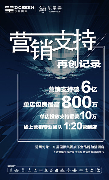 3月24日起,东呈又连续出台“10亿金融创新支持”“6亿流量精准输送”“最高800万营销包房”“线上平台精细运营”“空白市场加盟让利”等突破性举措,从金融端、流量端、渠道端、营销端和开发端等关键环节作为突破口,全力支持旗下加盟门店抢春时、争复苏、拉业绩,决胜酒店复苏之战。