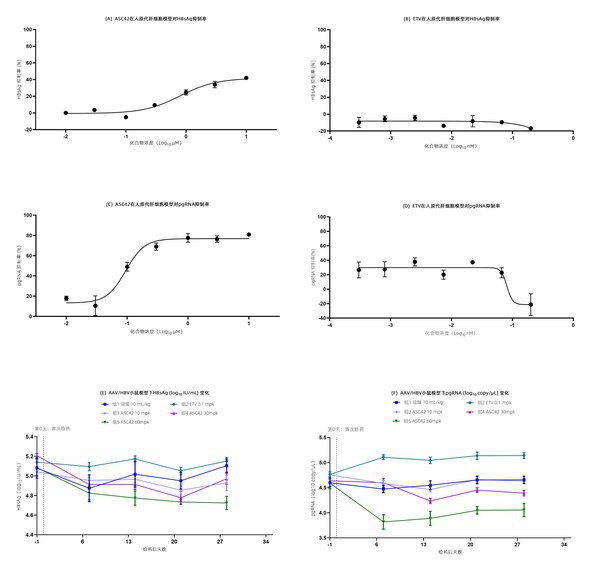 结论:FXR激动剂ASC42对HBV DNA、HBV pgRNA和HBsAg具有明显的抑制作用,提示ASC42对乙型肝炎具有临床治愈的潜力。这一结果支持ASC42在人体中进一步开展临床试验。